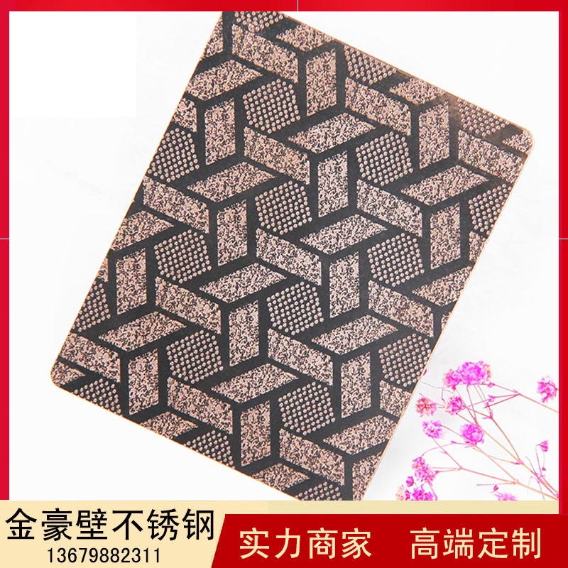 聽說建筑裝飾,不銹鋼花紋板與顏色搭配最佳!可供客戶選擇的顏色有:鈦黑(黑鈦)、寶石藍(lán)、鈦金、咖啡色、茶色、古銅、青古銅,香檳金,玫瑰金、紫紅、翡翠綠色等,顏色的搭配很隨意,只要和您的裝飾地方氛圍搭配在一起那就完美了。