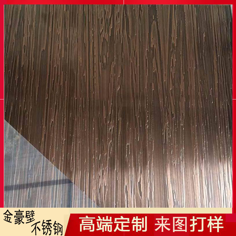 古銅不銹鋼拉絲板用在裝飾領域常用來點綴古樸雅致,高雅端莊氛圍,一般用于酒店裝飾,KTV裝飾和其他高檔裝飾工程。